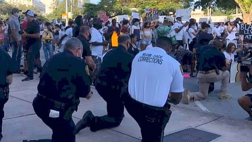 En muchos lugares de Estados Unidos manifestantes y policías al encontrarse se arrodillaron en una forma de enfrentarse juntos al racismo. Se ha abierto un diálogo para mejorar la actuación policial.