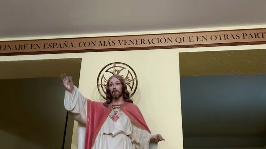 Pero, volviendo a la entrada de la casa, lo que más llama la atención es la estatua del Corazón de Jesús, por encima de la cual luce, en letras mayúsculas, este mensaje: “Reinaré en España con más veneración que en otras partes”. Pura ideología al servicio de la fe: España, la preferida de Dios. Más que “otras partes”. ¿Qué partes? ¿China, Cuba, la Venezuela del bolivariano Maduro o, quizás, la malvada Rusia, que sigue pagando su pecado de haber sido comunista? ¿Se lo dijo al arzobispo un ángel o la mismísima Santina?