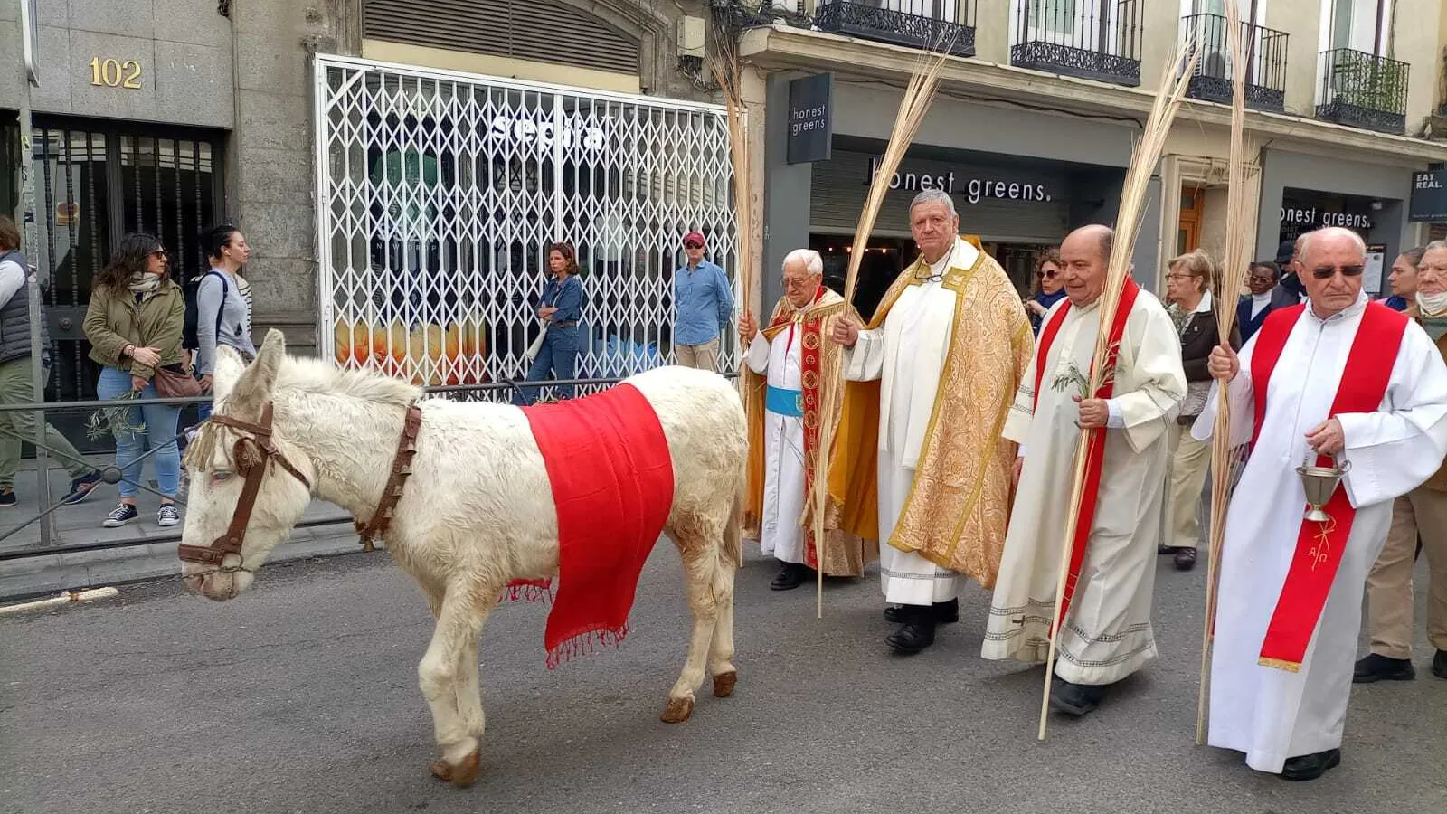 No faltaron las palmas, ni la misa, presidida por José Luis Segovia, vicario para el Desarrollo Humano Integral y la Innovación del Arzobispado de Madrid. Josito hizo una homilía solidaria y social, centrada en los 'sin techo', que esta Semana Santa pasada por agua encontrarán posada en San Antón.