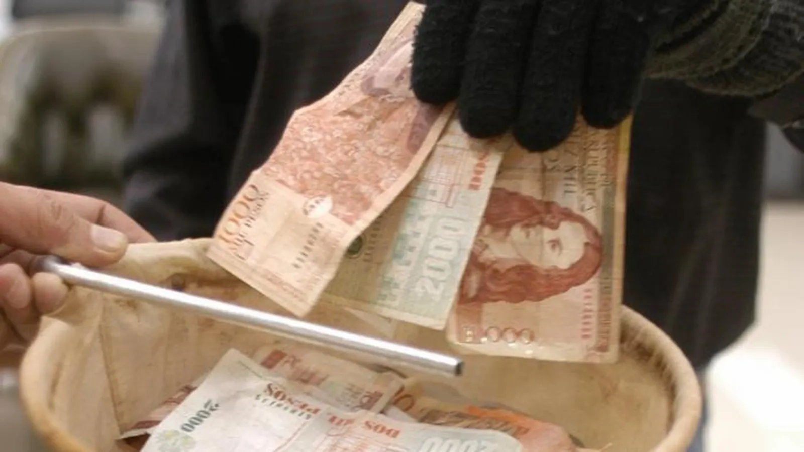 El limosnero coloca un cesto a las puertas del Aula Pablo VI