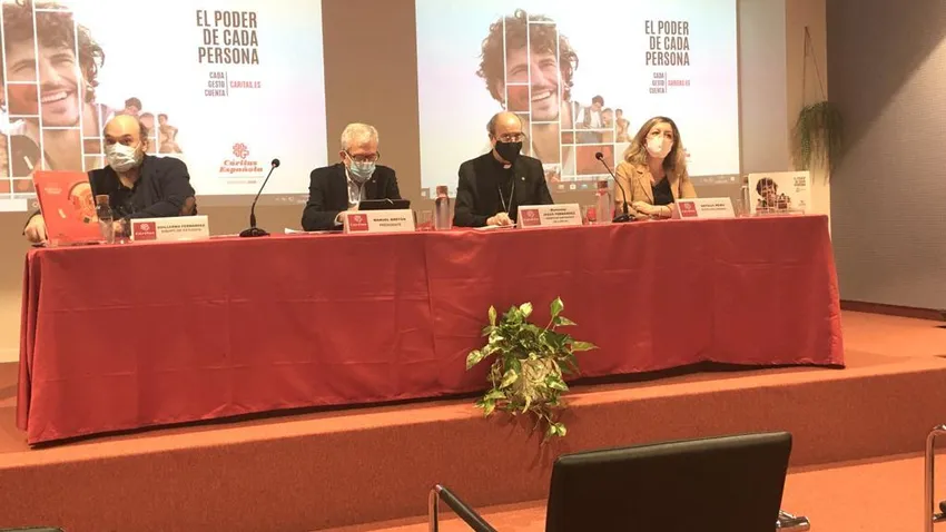 La rueda de prensa ha contado con las intervenciones de monseñor Jesús Fernández, obispo electo de Astorga y acompañante de Cáritas en la Conferencia Episcopal; Manuel Bretón, presidente de Cáritas Española; Natalia Peiro, secretaria general; y Guillermo Fernández, técnico del Equipo de Estudios.