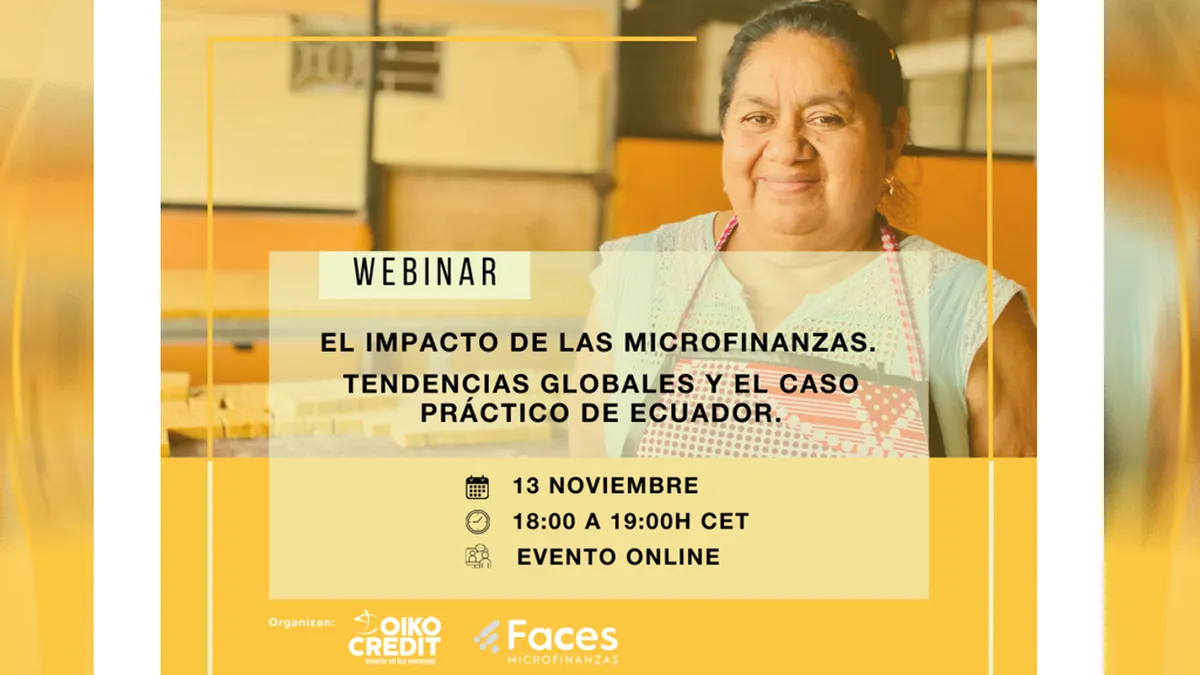 (Oikocredit).- Coincidiendo con la semana europea del microcrédito y en el marco de la serie de webinars de introducción a las microfinanzas, el miércoles 13 de Noviembre vamos a llevar a cabo el último webinar de la serie.