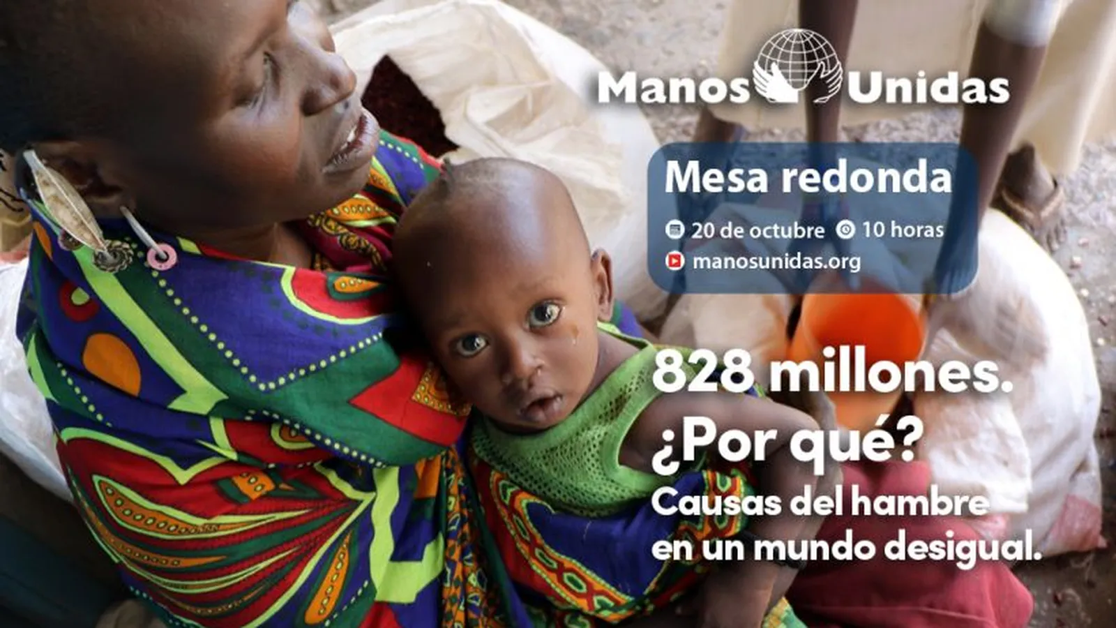 (Manos Unidas).- El próximo jueves 20 de octubre, a las 10:00h, tendrá lugar en la Asociación de la Prensa de Madrid (APM) una mesa redonda organizada por Manos Unidas para analizar y denunciar las causas del aumento del hambre en el mundo, así como para discutir y proponer líneas de actuación que contribuyan a garantizar el derecho a la alimentación de las poblaciones más vulnerables.