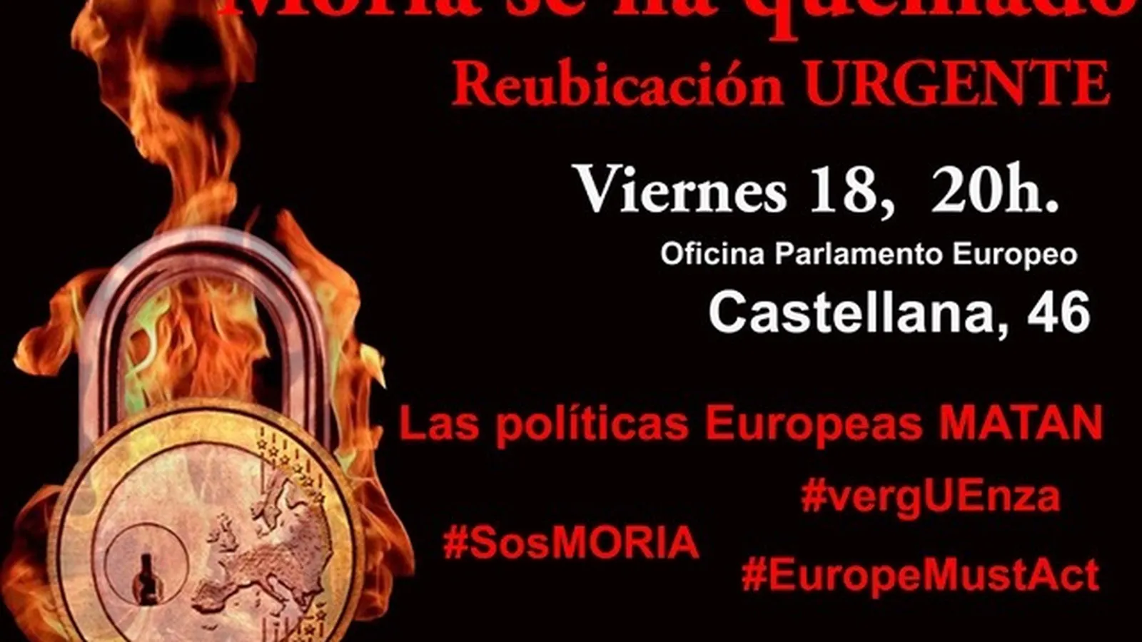 'Moria se ha quemado. Reubicación urgente ya', es el grito que esta tarde, a las 20 horas, congregará a más de 30 organizaciones sociales ante la representación en España del Parlamento Europeo (paseo de la Castellana 46 de Madrid) en solidaridad con las más de 13.000 personas migrantes y refugiadas que viven en el campo de Moria (muchos de ellos niños), al tiempo que reclaman "la reubicación de estas personas y rechazamos el silencio de este gobierno ante el destino y acogida de estas personas".