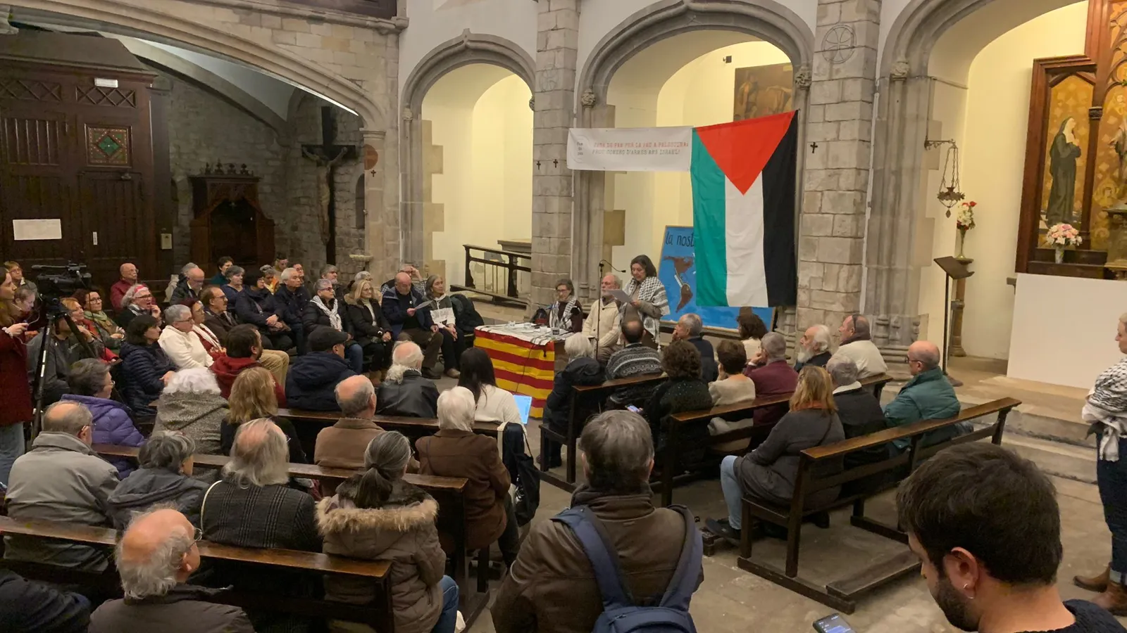 (Agencia Flama).- Una veintena de entidades cristianas catalanas se han adherido a la campaña impulsada por los activistas Gabriela Serra, Llum Mascaray y Martí Olivella, que el pasado 1 de febrero iniciaron una huelga de hambre por la paz en Palestina en la comunidad jesuita del carrer Palau de Barcelona, donde está la sede de la Fundació Migra Studium.