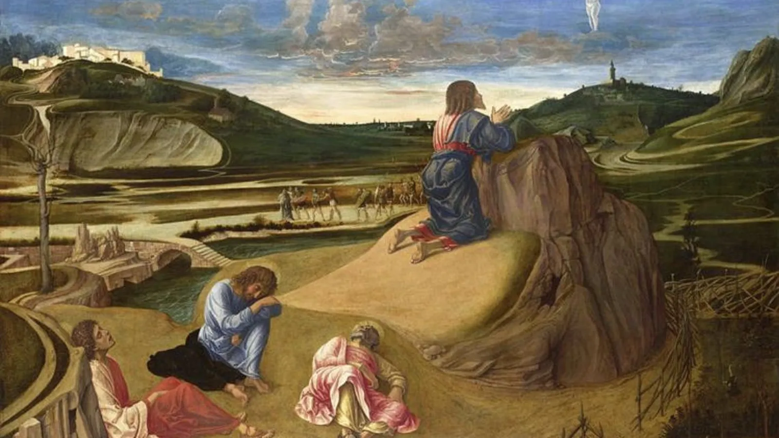 Jesús toma consigo a Pedro, Santiago y Juan y les confiesa: "Mi alma está triste hasta la muerte. Quedaos aquí y velad". Luego vuelve, pero los encuentra dormidos. Se aleja de nuevo y reza. Vuelve de nuevo y los encuentra dormidos. Los tres no saben qué responderle. Se va y vuelve por tercera vez, pero esta vez les dice: "¡Levantaos, vamos!". Hay una sensación de soledad y de profunda incomprensión, incluso emocional. Jesús está verdaderamente solo.