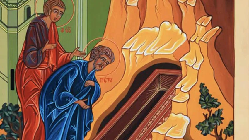 Pedro mueve los ojos: entra, observa. Y está solo allí dentro. Sólo más tarde entra el otro discípulo, que había llegado primero, y vuelve a fijarse en Juan, que habla de sí mismo. Parece sentir una impetuosa necesidad de decir a la vez su entusiasmo por Jesús y su respeto por Pedro.