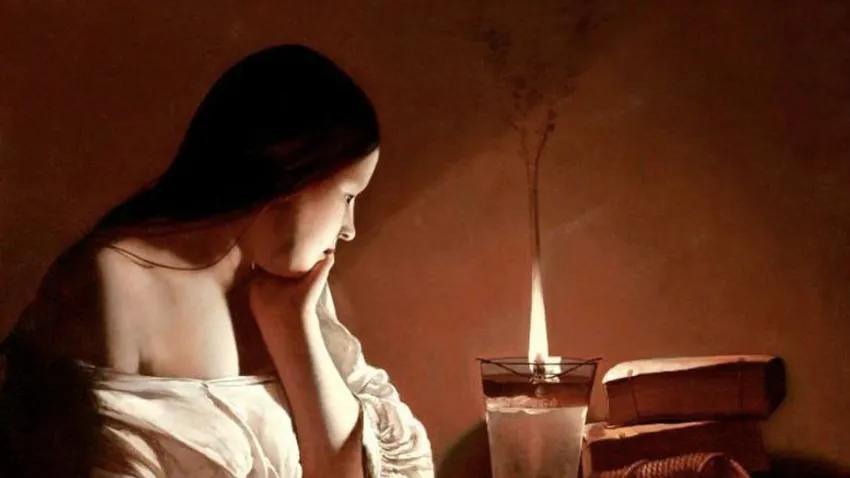 Y aquí Jesús, junto al agua, nos pide que imaginemos una llama. Es la de una lámpara que ilumina un dormitorio. No es fácil hacerlo junto al mar. Vemos la llama parpadeante que se extiende en el interior de una lámpara que la sostiene y expande su luz. Me vienen a la mente los lienzos de George La Tour, que era un fino observador de la realidad cotidiana con un ojo agudo para el juego de luces y sombras. A menudo ambientaba sus obras en interiores iluminados por una simple vela. Esto es exactamente lo que Jesús muestra a quienes le escuchan. En la brisa fresca del agua evoca una imagen muy cálida.