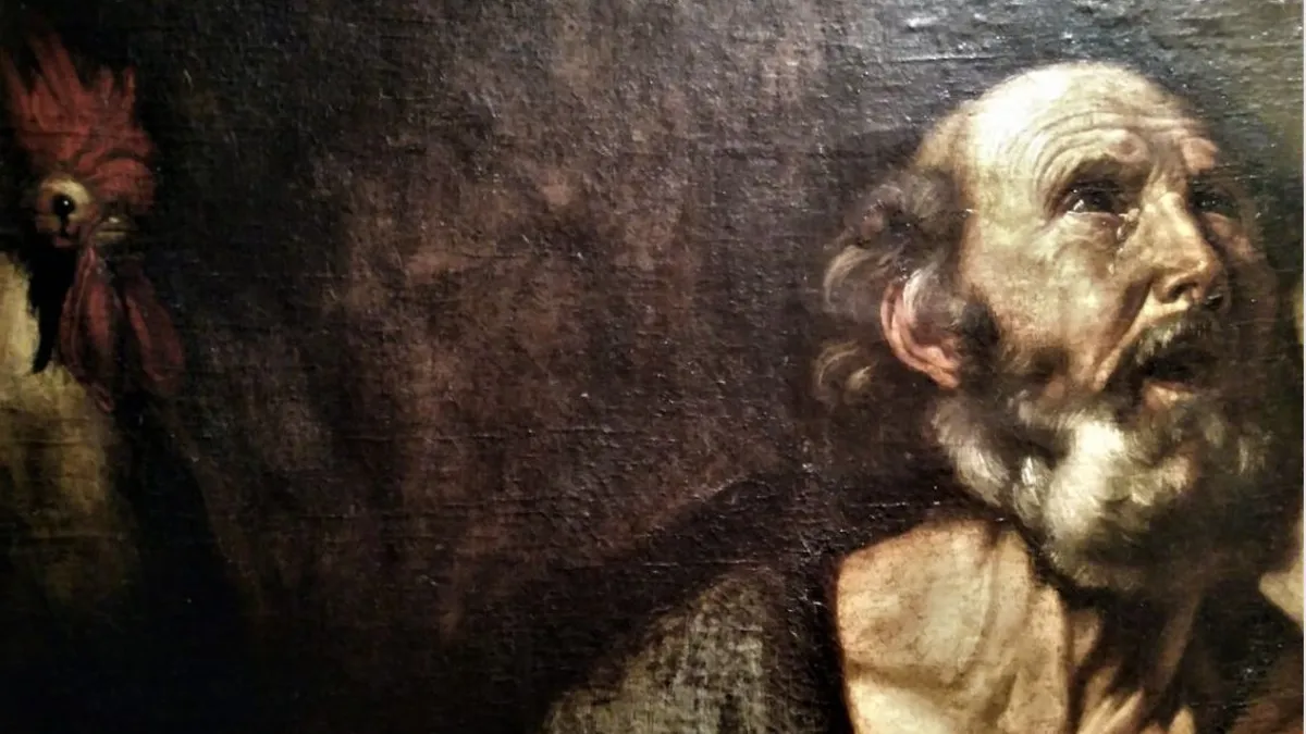 Rompe a llorar. Las palabras se apagan como una bombilla que se funde. Quedan las lágrimas que caen punzantes sobre el rostro de Pedro. Marcos no intenta comentar. No nos dice si se trata de un llanto de arrepentimiento, de vergüenza o de desesperación. Solo dice que el príncipe de los apóstoles llora. Pero es en ese llanto donde Pedro vuelve a ser verdaderamente él mismo, no Pedro contra el mundo, no Pedro superhombre, sino el hombre que ahora toma conciencia de la distancia entre su deseo y su capacidad.