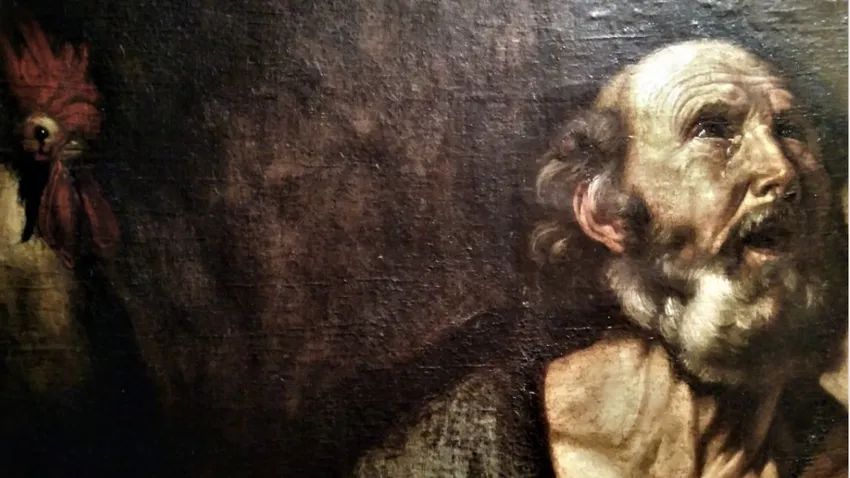 Se oye cantar a un gallo. Es una señal, un toque de alarma, un despertar. La señal que Jesús había anunciado unas horas antes ha llegado: «Antes de que cante dos veces el gallo, me negarás tres veces». Pedro lo recuerda. El recuerdo lo atraviesa como un golpe. Vuelve a escuchar en su interior las palabras del Maestro. Y él había respondido: «Aunque todos se escandalicen, yo no»; «Aunque tenga que morir contigo, no te negaré». El abismo de la traición se abre ante un Pedro confuso, aturdido.