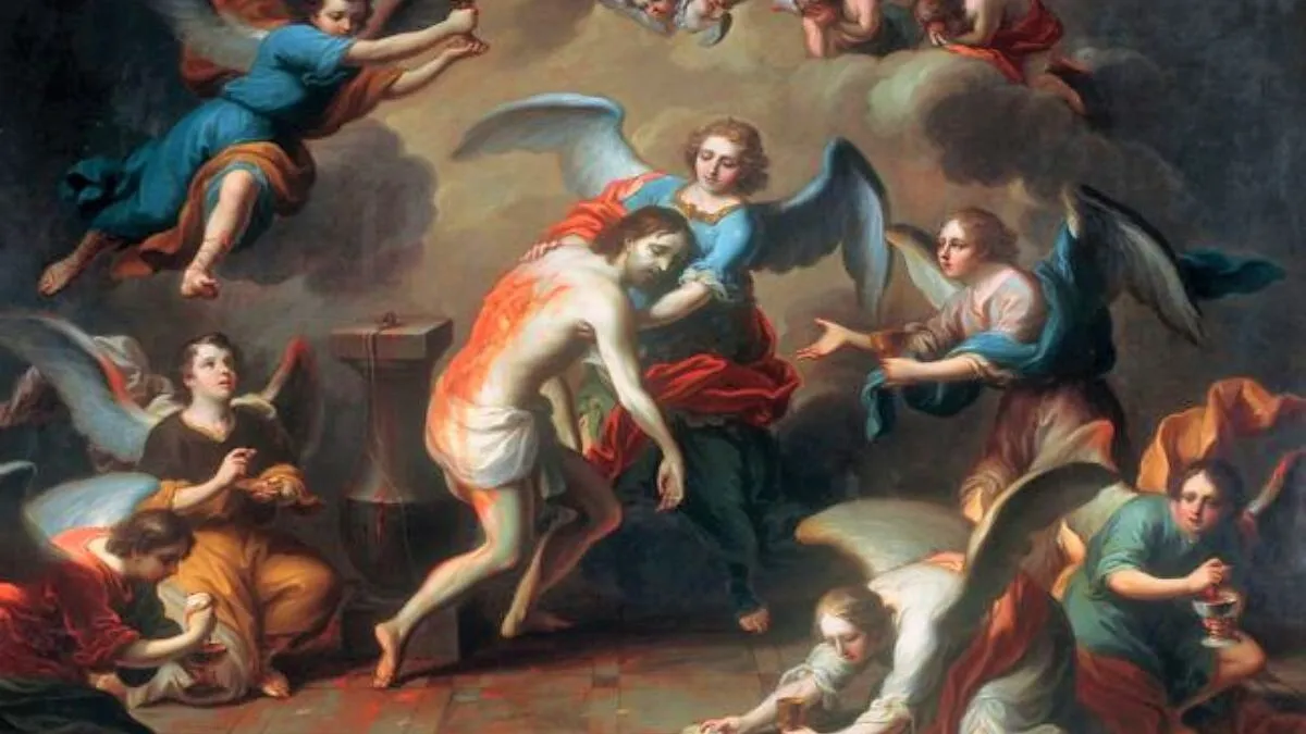 En una antigua homilía del oficio de las Horas, se especula cuáles fueron las consecuencias del tremendo dolor de Cristo en la cruz y su Pasión soportando toda ignominia, vergüenza y degradación. Ese dolor es motivo para que la reconciliación llegue a los sumergidos en las tinieblas y en las sombras de la muerte para liberarlos de su desesperación. Cristo descenderá a los infiernos para adentrarse en la espesa e inquietante realidad de una existencia sobrenatural encadenada por el peso del mal que pronto verá su liberación. Un párrafo de esta antigua homilía es elocuente al respecto: “Levántate, vayámonos de aquí. El enemigo te hizo salir del Paraíso; yo, en cambio, te coloco en el trono celestial…Mi costado ha curado el dolor del tuyo. Mi sueño te sacará del sueño de la muerte...”