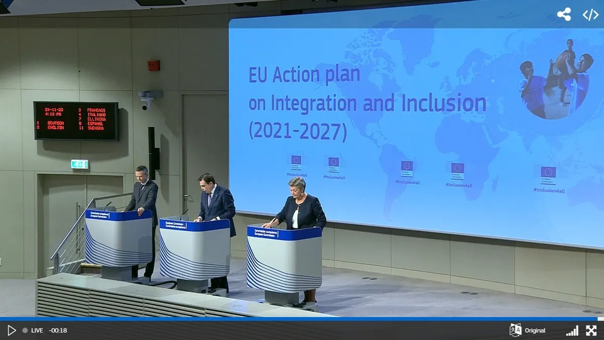 En la rueda de prensa donde se dio a conocer el Plan de Acción participaron el vicepresidente Margaritis Schinas y la comisaria Ylva Johansson, que enfatizaba: “Los migrantes son ‘nosotros', no ‘ellos'. Todos tienen un papel que desempeñar en garantizar la cohesión y la prosperidad de nuestras sociedades”.