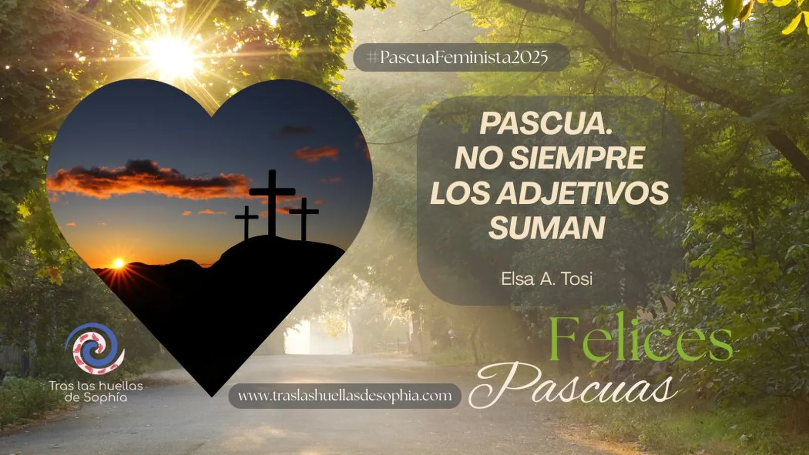 Me parece feliz la propuesta de “Tras las huellas de Sofía”, de compartir reflexiones sobre Pascua, festividad central del cristianismo. Es tan enorme el misterio de Amor de Dios, tan inconmensurable su Misericordia, tan inagotable su Compasión, siempre dispuesto a rescatarnos de nuestras transgresiones, que añadirle a Pascua el adjetivo “feminista” parece que se cuela como una apropiación indebida, como una restricción de la dimensión universal de la Gloriosa Resurrección de Jesús. Su apertura a la trascendencia no selecciona, abarca a la humanidad de todos los tiempos, la pasada, la presente, la futura. Él rescató a la mujer de la subvaloración y postergación a la que la historia la sometió. La mujer encorvada (Lc. 13,11-17) recibió el rescate de Jesús con su sola mirada, ella recuperó lo que se le había robado por siglos y lo que aún se le sigue robando. Esa mujer recuperada, vivió su Pascua en el rescate de su dignidad y su reubicación en el contexto personal, social y religioso. Ese rescate de Jesús, ensamblado con la creación (Génesis 1,27), nos lleva a asumir nuestra identidad originaria de mujeres, aunque se necesite seguir aclarando, posicionando y defendiendo que nuestros pensamientos, capacidades, sentimientos, conductas, son femeninos como para que el mundo no lo olvide y tan válidos como los de los masculinos. Tenemos una identidad propia ya establecida por el Creador. Los desórdenes humanos, las dominaciones, los desvíos mezquinos, las imposiciones de roles, el ejercicio de un poder avasallador y una socialización impregnada de machismo, no podrán eliminar la realidad de lo que es ser mujer, si cada una de nosotras asume su identidad y su protagonismo desde el lugar que Dios nos tiene destinado desde el origen. Ya es tiempo de reconocer y valorar lo hecho y padecido por tantas mujeres, muchas de ellas anónimas, que a lo largo del tiempo con mayor o menor notoriedad y reconocimiento lucharon por deshacerse de la resaca de una cultura masculina avasalladora y asfixiante y abrieron puertas para las nuevas generaciones. Lo antedicho de ninguna manera pretende negar la persistencia de situaciones de injusticia, indignidad, postergación, discriminación que aún padecen millones de mujeres y la necesidad urgente de seguir trabajando por su reivindicación total, sin claudicaciones pese a los “poderosos” de todas las clases sociales y de los distintos ámbitos de la sociedad, incluida la Iglesia Católica y otros credos, que pretenden seguir absorbiendo los beneficios del poder masculino indiscutible que se auto arrogan. Pero el estandarte de “feminista” como rótulo distintivo en Pascua, le da al desafío que tenemos aún por delante, un tinte casi bélico, que desde mi modesta perspectiva no le suma a nuestro “ser mujer” ya que parece darle a la Pascua un tufillo de contienda. Esto no significa dejar de reconocer que en nuestro tiempo, las distintas posiciones llevan sus rótulos y banderas, y ciertos adjetivos calificativos se posicionan en los hechos cotidianos y en los elementos que se integran a la cultura, pero el exceso puede disminuir el efecto y desviar la comprensión de legítimas demandas y además se corre el riesgo de privilegiar “feminismo” más que “mujer”. Que quede claro que no me estoy refiriendo a menguar la tarea que llevamos adelante desde el feminismo católico, ni estoy encolumnada en un “gatopardismo” (que lo hay), mi propuesta pasa por enfatizar nuestro “ser mujer”. Y si se asume “ser mujer” en los términos de Jesús, el feminismo entendido como justicia de restitución, está implícito y esto no significa que no debemos seguir comprometiéndonos en la línea de la recuperación de dignidad y derechos. Celebrar la Pascua, es celebrar la vida en el tiempo histórico que nos toca transitar, sabiéndonos responsables con los varones del mundo que habitamos, sabiendo también que la Resurrección es apertura de la mente y del corazón para responder al llamado de fraternidad que necesita de una nueva re vinculación en la que el respeto, la inclusión, la humanización sean el fermento de una nueva convivencia en amistad social. Pascua es el paso de la esclavitud de nuestras debilidades a la libertad que nos gana Cristo. Vivamos esa libertad de mujeres y varones creados a imagen de Dios; ya es tiempo de pasar de confrontaciones a propuestas de integración donde ambos, caminemos juntos en la igual dignidad y derechos con que fuimos creados. Que el Hosanna que entonamos el Domingo de Ramos, resuene todos los días y sea el canto recordatorio de nuestro compromiso de vivir todos los día la fiesta de la Resurrección.
