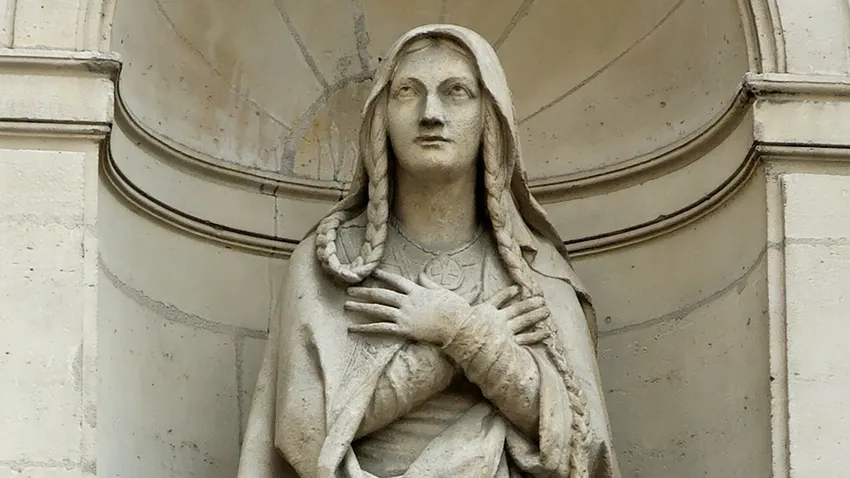 Debido a sus muchas virtudes y los numerosos ejemplos de santidad, Genoveva se convirtió en un personaje conocido ya en su época, incluso Simón Estilita sentía admiración por ella. La patrona de Paris habría de ser especialmente recordada por haber salvado a la ciudad. Atila, “El azote de Dios” iba sembrando el terror allá por donde pasaba y un día le tocó a la Galia recibir la visita de tan indeseado huésped. Las gentes de Lutecia estaban aterrorizadas y buscaron algún tipo de protección en Genoveva que ya había adquirido un reconocimiento de persona virtuosa y santa entre sus conciudadanos. Ante esta situación extrema la tradición nos la presenta animando a los parisinos con estas palabras: “Gentes de Paris, amigos míos, hermanos míos, os engañan… Atila avanza, es cierto, pero no atacará vuestra ciudad. Os lo aseguro en nombre de Dios… Que los hombres huyan, si lo desean, si no son capaces de luchar más. Nosotras, las mujeres, rogaremos tanto a Dios, que Él atenderá nuestras súplicas”. La historia corrobora que estas palabras se cumplieron y por la razón que fuera, Atila pasó de largo, para dirigirse hacia Orleans y los parisinos se mostraron enormemente agradecidos a su paisana, pero iba a haber más.