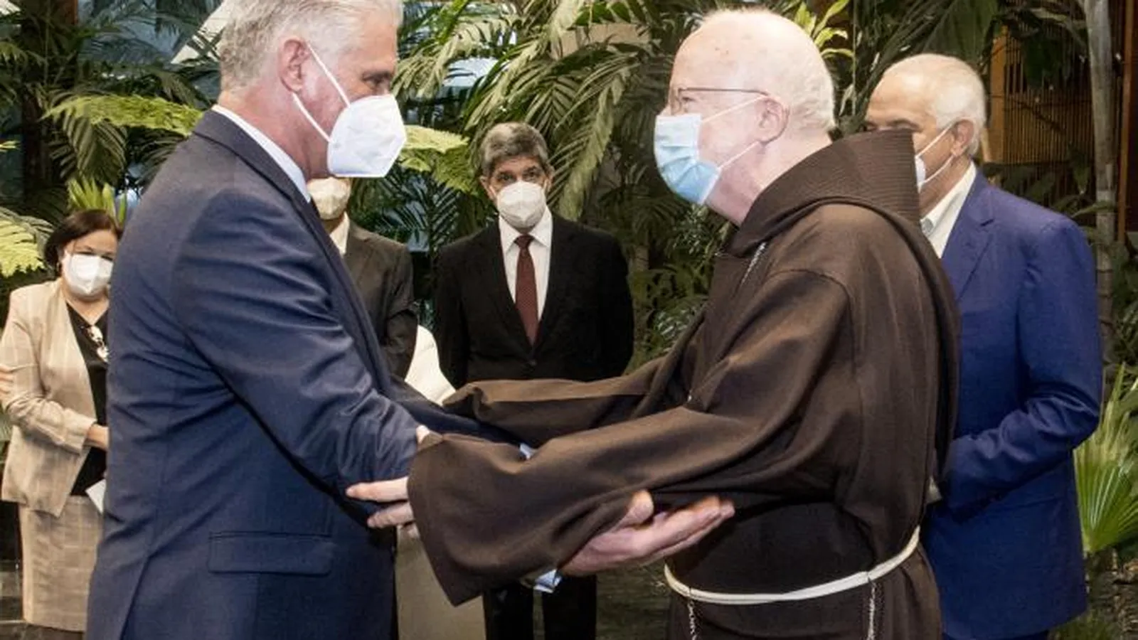 Acompañó al Cardenal O’Malley, Giampiero Gloder, nuncio apostólico de Su Santidad en Cuba. Junto al Presidente de la República, participaron el canciller Bruno Rodríguez Parrilla; el jefe del Departamento Ideológico del Comité Central del Partido, Rogelio Polanco Fuentes; la jefa de la Oficina de Atención a los Asuntos Religiosos del Comité Central del Partido, Caridad Diego Bello; y Carlos Fernández de Cossío, director general de Estados Unidos del Minrex.