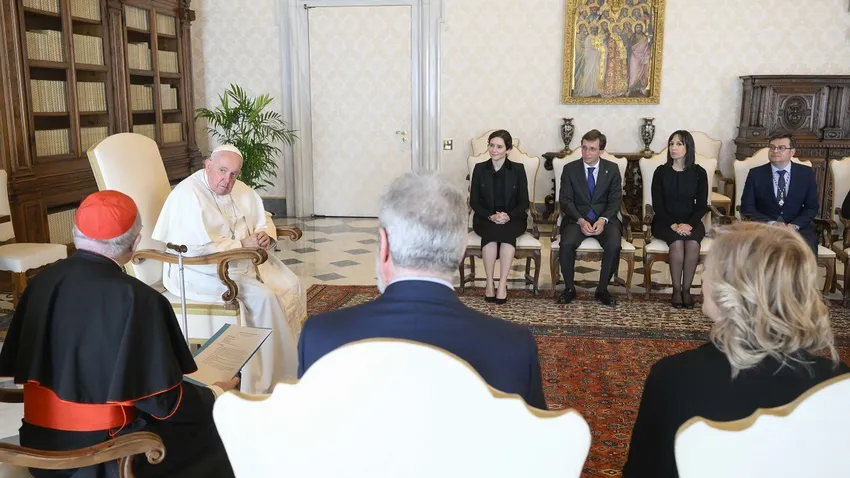 El Pontífice recibió a la presidenta, el alcalde y la delegada del Gobierno en Madrid