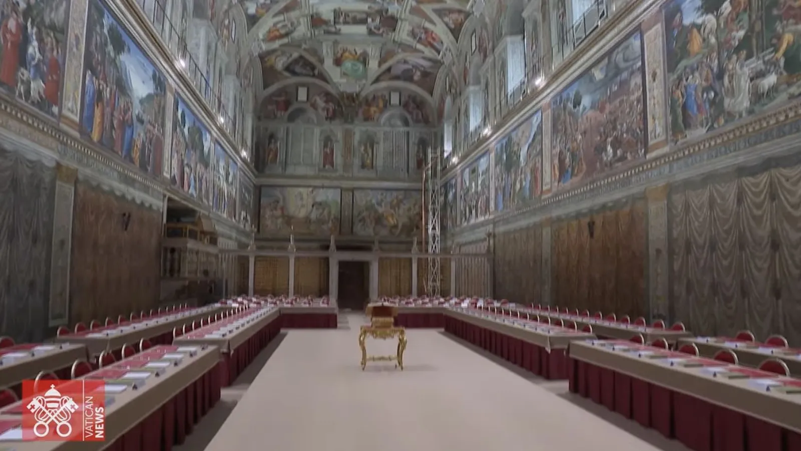 En tan solo una semana, los técnicos desactivaron los sensores instalados para la conservación de los frescos, construyeron un suelo técnico elevado que nivela el pavimento cosmatesco original y montaron las mesas y sillas ceremoniales, todas cuidadosamente revestidas con telas de la Florería vaticana. A la vez, se realizó una revisión completa de los sistemas eléctricos y de climatización, tanto en la Sixtina como en los alojamientos.