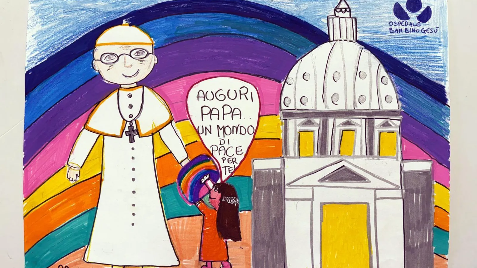 Son muchos los dibujos que han llegado al Pontífice de parte de los pequeños pacientes del Hospital Pediátrico Bambino Gesù, que en la ludoteca del centro se han divertido con diferentes colores para desearle a León XIV un «feliz cumpleaños». En sus coloridas creaciones, los niños acompañan con sus pensamientos el deseo de paz para todo el mundo expresado por el Papa desde el día de su elección. Con la confianza de que el Papa sea la persona adecuada para encontrar las vías del diálogo, en un dibujo se representa a León XIV diciendo «Tranquilos, yo me encargo» mientras ondea la bandera de la paz, entre una paloma con una rama de olivo y la basílica de San Pedro coloreada en blanco y amarillo, como la bandera del Vaticano. «Te queremos muchísimo, Papa León XIV», es el gran abrazo que le dan al Pontífice los pequeños del Bambino Gesù en el día de su cumpleaños.