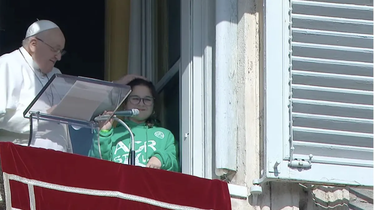 Finalmente, y tras recordar a los enfermos de lepra, el Papa dio la voz a una de las chicas de la Acción Católica de las parroquias y escuelas católicas de Roma, que le flanqueaban, y que, dirigiéndose "a la ciudad, pero también a todo el mundo", reclamó el fin de las guerras "y nuestro deseo de paz". "El mundo es un don de Dios, no debemos destruirlo con el odio", señaló la joven, quien aseguró que "queremos estar del lado de la paz, intentando apagar, a nuestra pequeña manera, el fuego del odio y de la violencia".