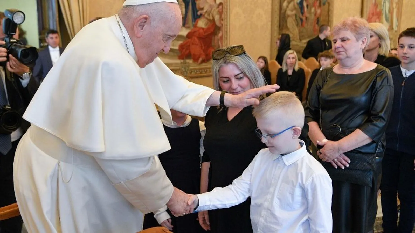 El Papa invitó luego a las familias a un momento de oración, en silencio, al que unió el suyo. A continuación, les dio su bendición y quiso saludar personalmente a cada uno de los participantes en el encuentro.
