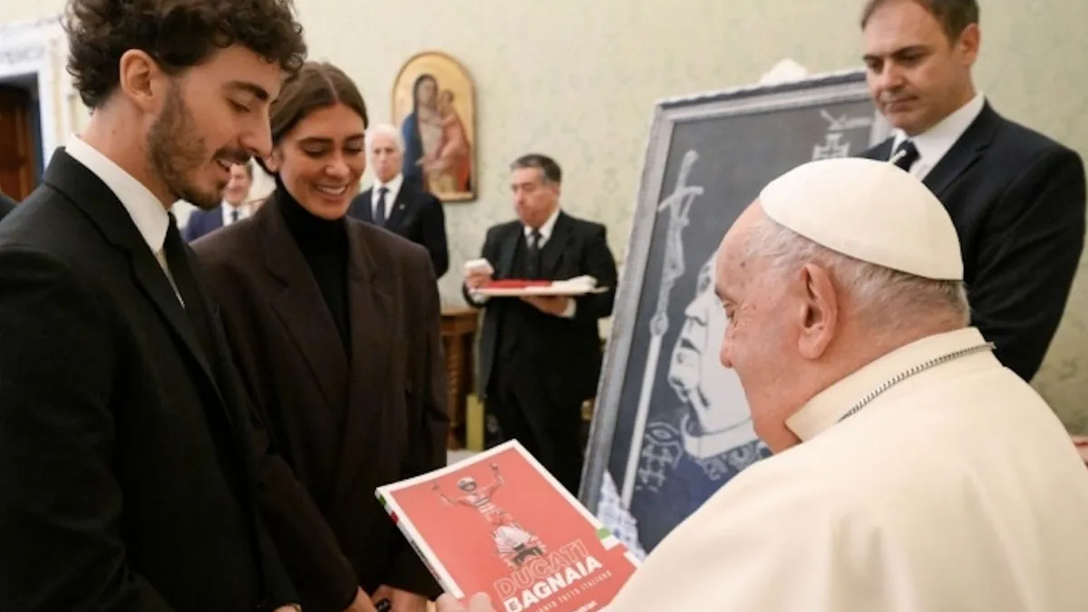 "Os deseo lo mejor en vuestro trabajo y os bendigo. Por favor, recen también ustedes por mí, que lo necesito, mi trabajo está acelerado y mi moto es vieja y no funciona bien", concluyó.