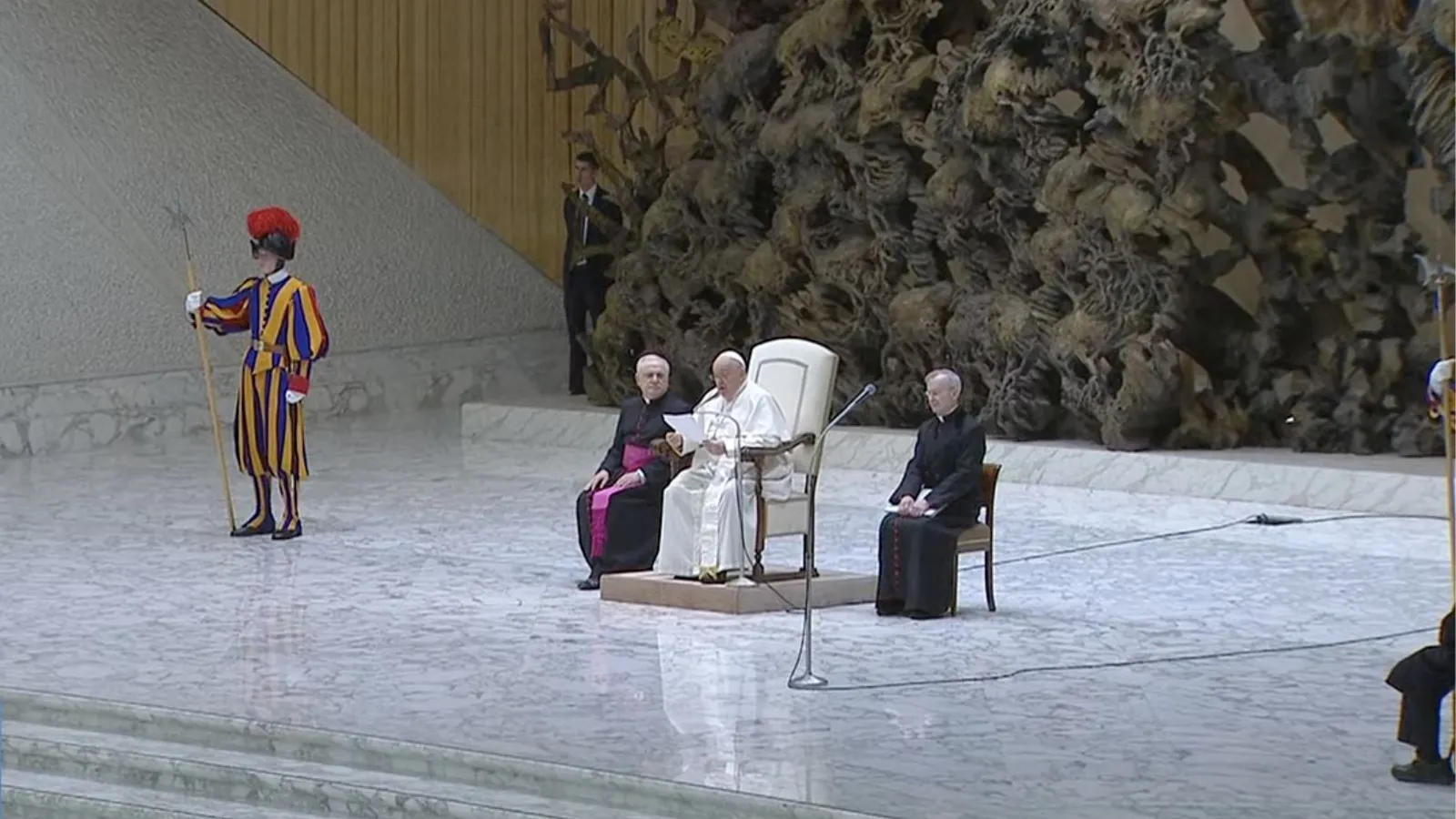 Finalmente, a la hora de los saludos, el Papa pidió que "renovemos nuestra cercanía con oraciones por la querida población de Ucrania que está sufriendo y a todos los que sufren el horror de la guerra en Palestina e Israel, así como también en otras partes del mundo. Recemos, oremos por estas personas que está sufriendo por la guerra y recemos al Señor para que siembre en el corazón de las autoridades de estos países la semilla de la paz".