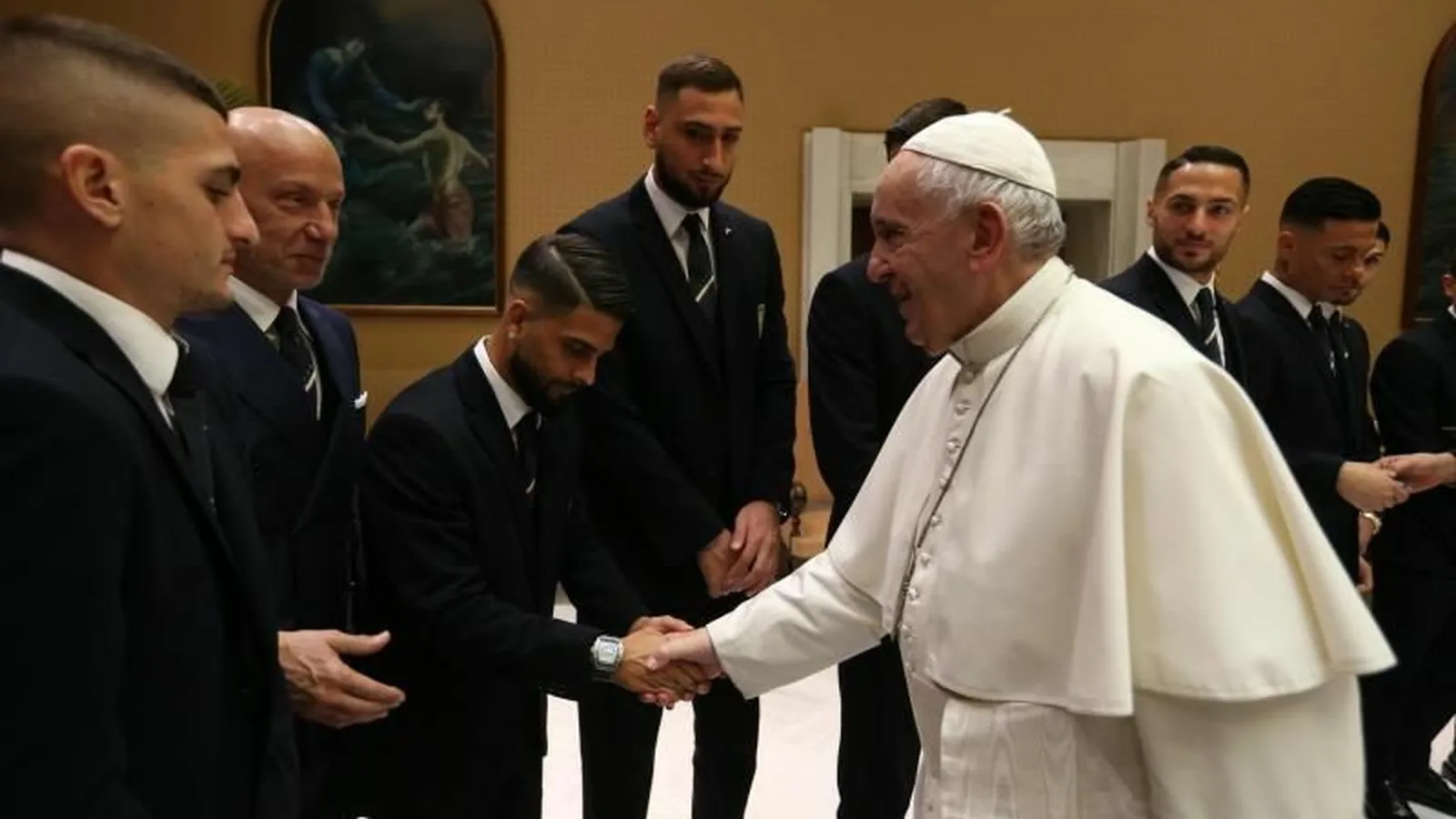 La reunión con el Papa en el Vaticano duró cerca de treinta minutos y a continuación la selección italiana se dirigió hacia el centro deportivo Acqua Cetosa, para seguir con la preparación del partido del próximo martes contra Liechtenstein.