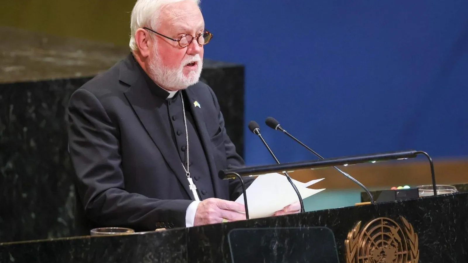 Durante su discurso representando al Vaticano, estado que es Observador Permanente en Naciones Unidas, reiteró la necesidad «de una paz justa y estable entre israelíes y palestinos, basada en una solución de dos Estados, de conformidad con el derecho internacional y las resoluciones de la ONU».