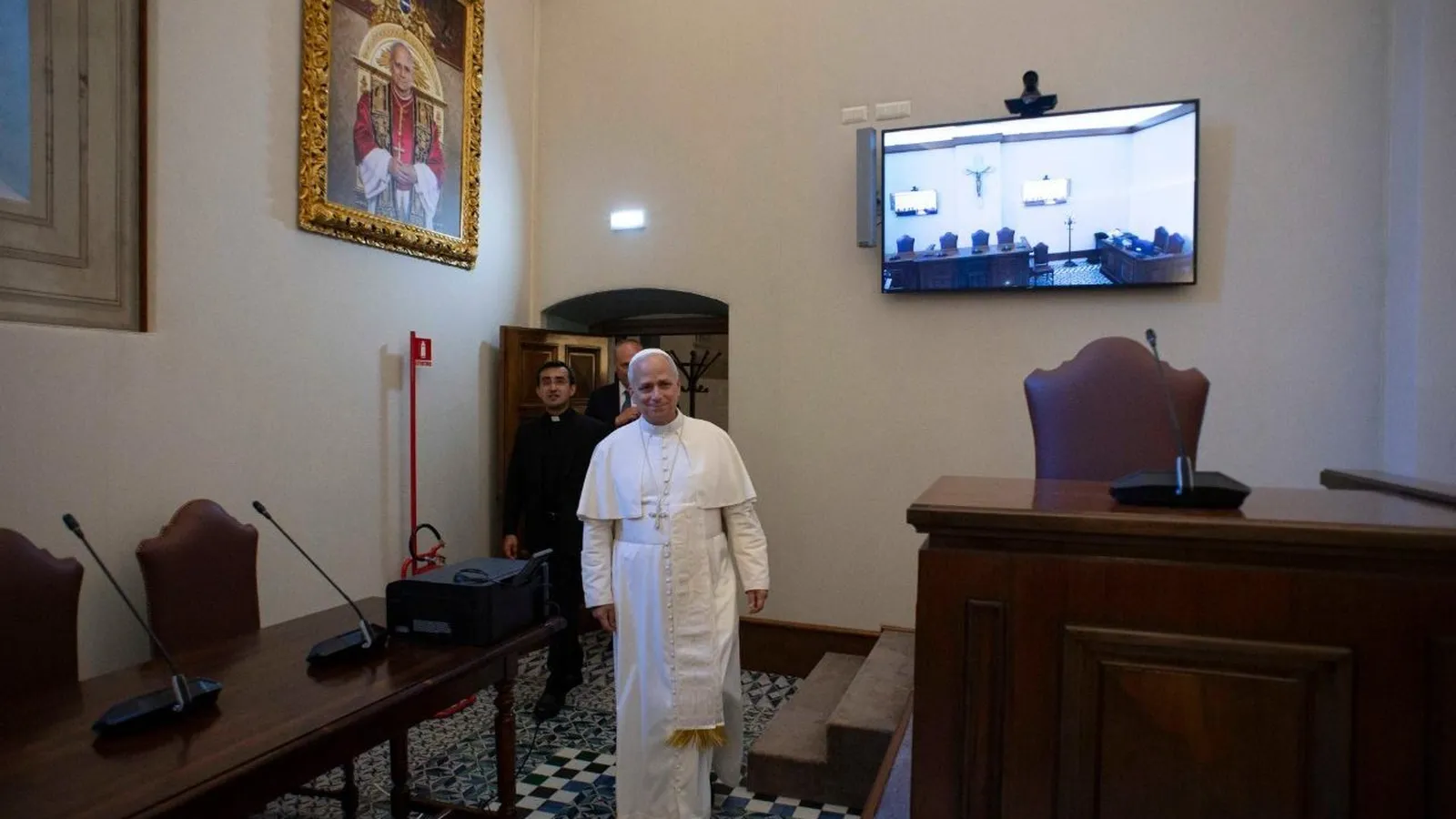 León XIV visita la nueva Sala del Tribunal Vaticano (@Vatican Media)