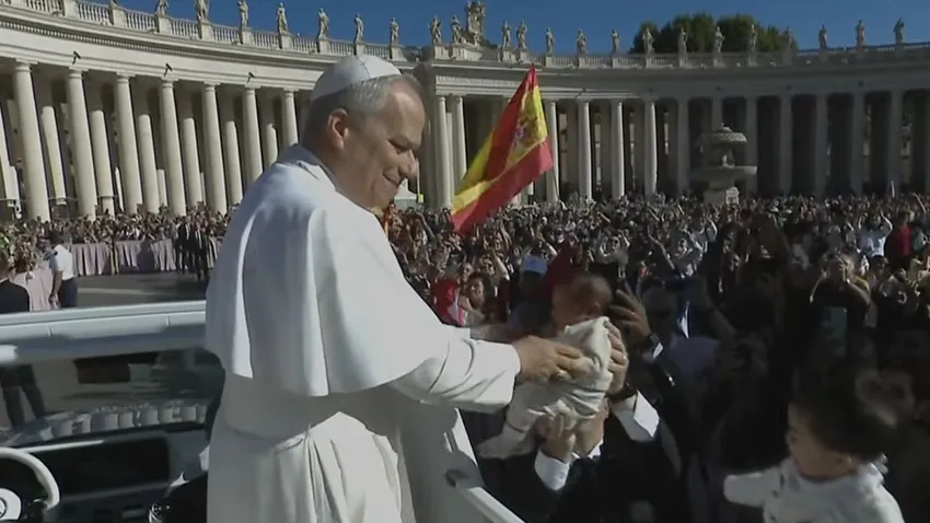 Jubileo de los catequistas en Roma. Mañana soleada en una plaza de San Pedro abarrotada por responsables de la formación de niños y jóvenes católicos de todo el mundo, que recibieron al Papa León con alegría. Prevost saluda a los fieles antes de la tradicional audiencia jubilar de los sábados, en la que el pontífice abunda en la idea del Jubileo y los "peregrinos de esperanza" que intuyen "una gran necesidad de renovación que nos concierne a nosotros y a toda la tierra".