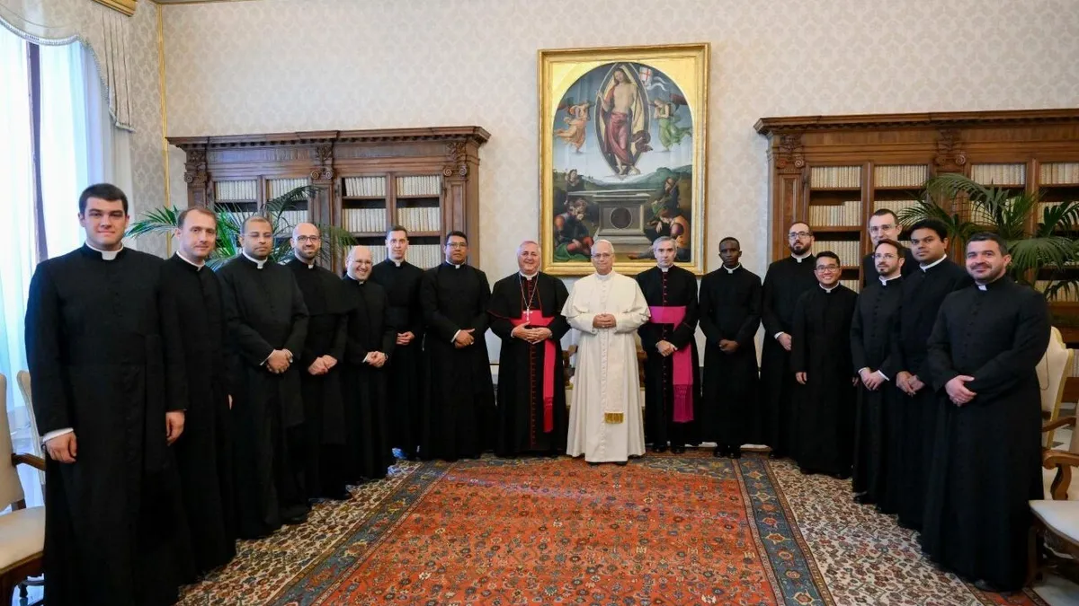 (Vatican News).- “Me complace encontrarme hoy con ustedes y dirigirles a cada uno mi cordial saludo”: con estas palabras, el Papa León XIV recibió en audiencia, este viernes 20 de junio, a los sacerdotes de la Pontificia Academia Eclesiástica que acaban de concluir la experiencia de Año Misionero, acompañados por el Presidente de la Pontificia Academia, Monseñor Salvatore Pennacchio y el Prefecto de Estudios, monseñor Gabriel Viola.