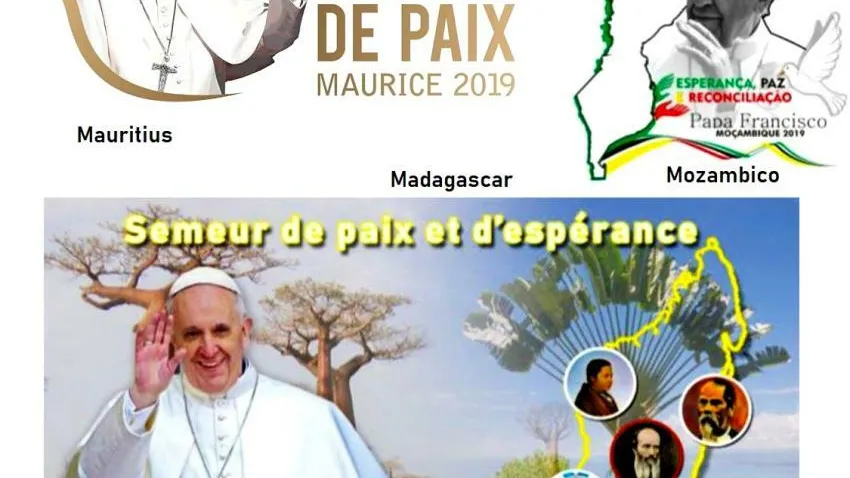 Los lemas que acompañarán al Santo Padre en cada nación son: Esperanza, paz y reconciliación para el viaje a Mozambique; Sembrador de paz y de esperanza en Madagascar y Papa Francisco peregrino de paz en Mauricio.
