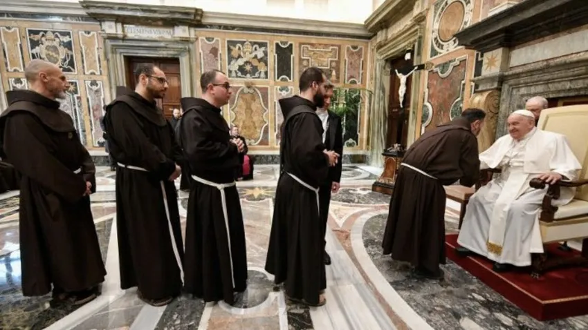 (Vatican News).- Es "un testimonio siempre actual del Evangelio" el que "en su pobreza de espíritu y en su entrega" a Dios dejó San Francisco. Lo subrayó el Papa al recibir en audiencia hoy, 5 de abril, en la Sala Clementina del Palacio Apostólico, a los frailes menores del santuario del Alverna y de la provincia toscana. La ocasión es el octavo centenario del don de los estigmas, recibidos por el poverello de Asís el 14 de septiembre de 1224 y que los religiosos franciscanos conmemoran con la peregrinación a varias comunidades de una reliquia de la sangre, llevada también al Pontífice, para recordar la importancia "de la conformación a 'Cristo pobre y Crucificado'" del patrón de Italia.