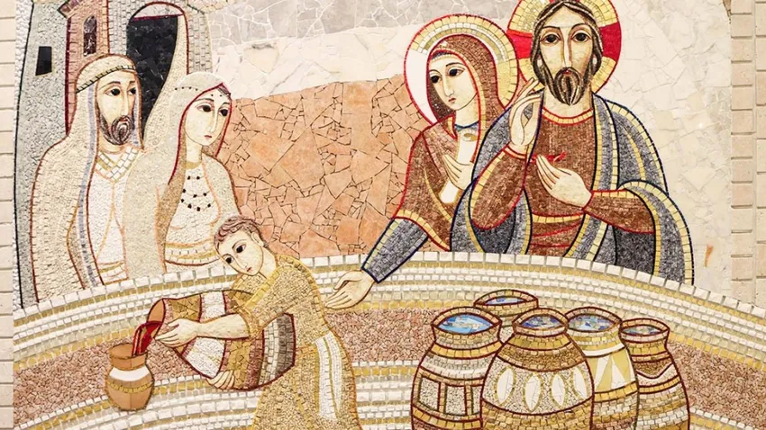 Es un indicio que revela el amor de Dios, que no reclama atención sobre la potencia del gesto, sino sobre el amor que lo ha provocado. Nos enseña algo del amor de Dios, que es siempre cercano, tierno y compasivo. El primer signo sucede mientras dos esposos están en dificultad en el día más importante de sus vidas. En mitad de la fiesta falta un elemento esencial, el vino, y se corre el riesgo de que la alegría se apague entre las críticas y la insatisfacción de los invitados.