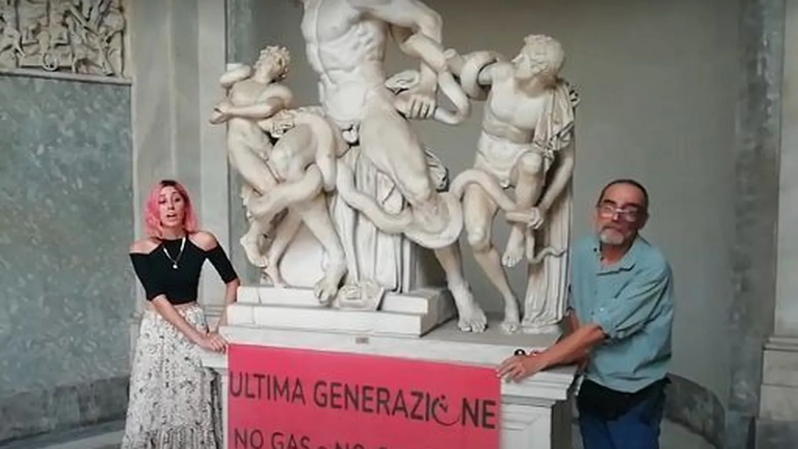 La acción ocurrió el 18 de agosto de 2022, cuando dos activistas pegaron sus manos a la base del Laocoonte, un grupo escultórico de época romana del 40 a. C., que representa al famoso sacerdote troyano y sus hijos devorados por serpientes marinas, como narra La Eneida.
