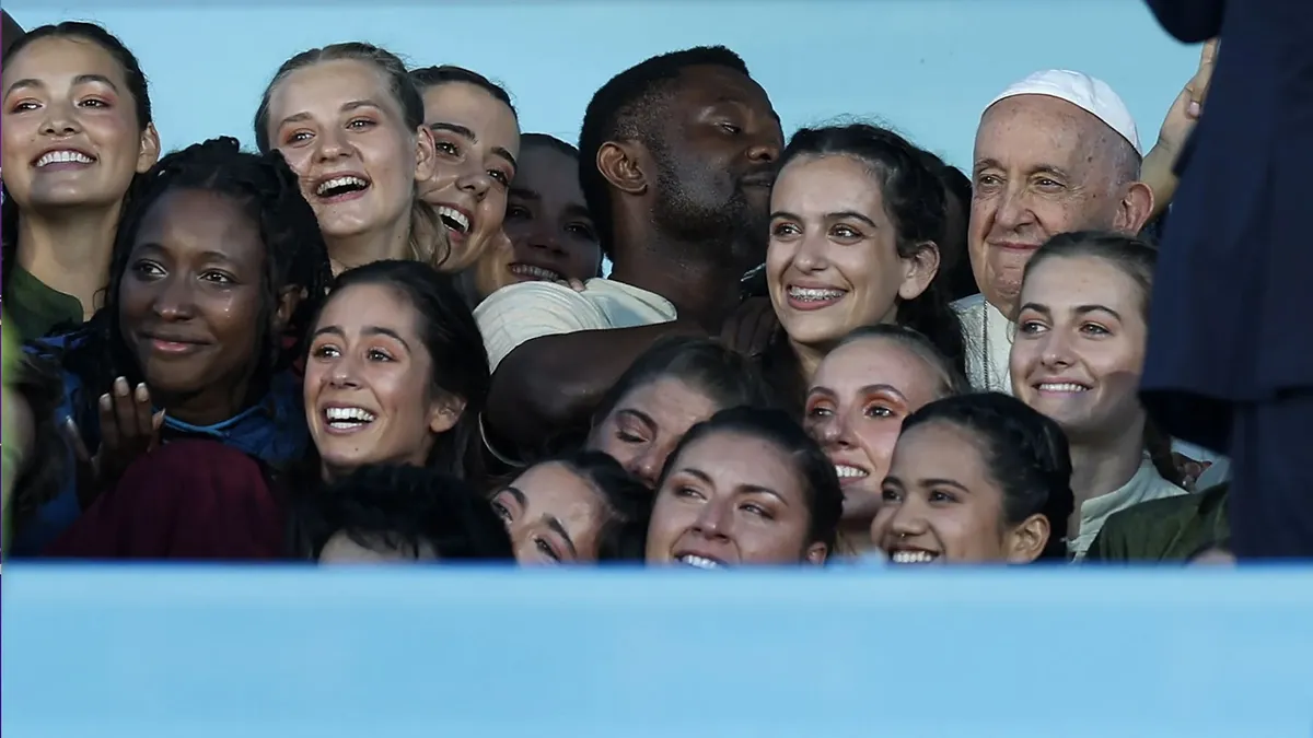 Les dejo una imagen más sugestiva para vuestro itinerario. Al llegar a la Basílica de San Pedro, en Roma, se atraviesa la plaza que está rodeada por la columnata diseñada por el famoso arquitecto y escultor Gian Lorenzo Bernini. La columnata, en su conjunto, tiene la forma de un gran abrazo: son los dos brazos abiertos de la Iglesia, nuestra madre, que acoge a todos sus hijos. En este próximo Año Santo de la Esperanza, los invito a todos a experimentar el abrazo del Dios misericordioso, a experimentar su perdón, la remisión de todas nuestras “ofensas interiores”, como era tradición en los jubileos bíblicos. Y así, acogidos por Dios y renacidos en Él, conviértanse también ustedes en brazos abiertos para tantos de sus amigos y coetáneos que necesitan sentir, a través de vuestra acogida, el amor de Dios Padre. Que cada uno de ustedes regale «aunque sea una sonrisa, un gesto de amistad, una mirada fraterna, una escucha sincera, un servicio gratuito, sabiendo que, en el Espíritu de Jesús, esto puede convertirse en una semilla fecunda de esperanza» (ibíd., 18), y se conviertan así en incansables misioneros de la alegría.