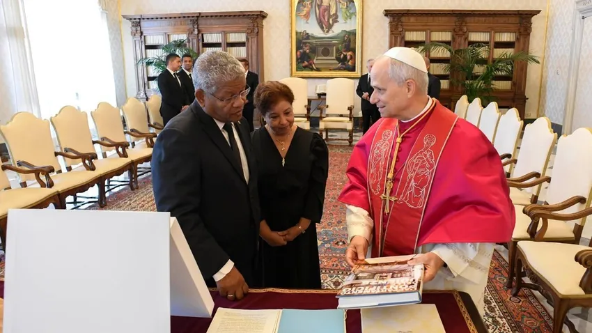 (Vatican News).- Hoy, 22 de agosto, León XIV ha recibido en audiencia, en el Palacio Apostólico, al Presidente de la República de Seychelles, Wavel Ramkalawan, quien sucesivamente se ha reunido con el Secretario de Estado, cardenal Pietro Parolin, acompañado por Monseñor Mirosław Stanisław Wachowski, Subsecretario para las Relaciones con los Estados.