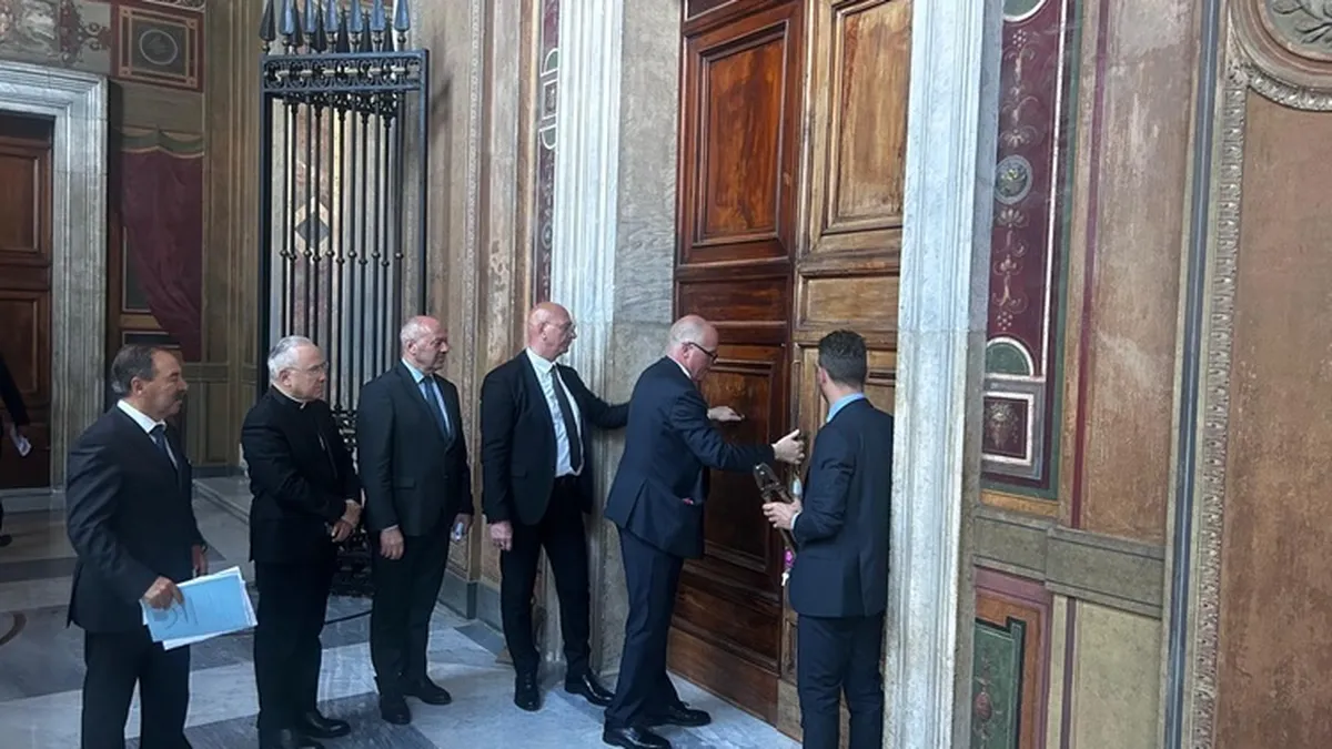 La iniciativa pretendía "delimitar el área del Cónclave", la noche anterior a la misa de elección del pontífice, colocando un sello con la inscripción 'Cónclave' y '2025'.