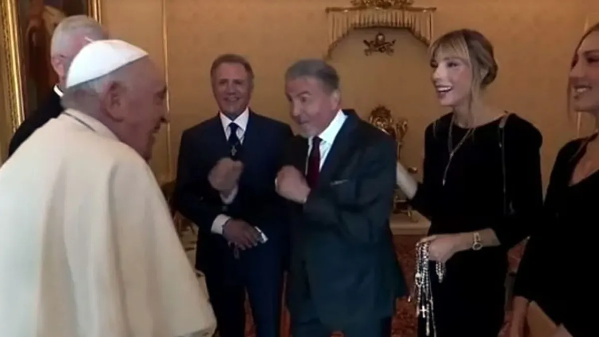 "Hemos crecido con sus películas", le dijo el pontífice a Stallone, mundialmente famoso por interpretar personajes como "Rocky" y "Rambo", quien sonrió agradecido y, a modo de respuesta, bromeó con él: "¿Listo para boxear?", le preguntó cerrando los puños, un gesto que repitió también Francisco, según las imágenes difundidas por el sitio "Vatican News" .