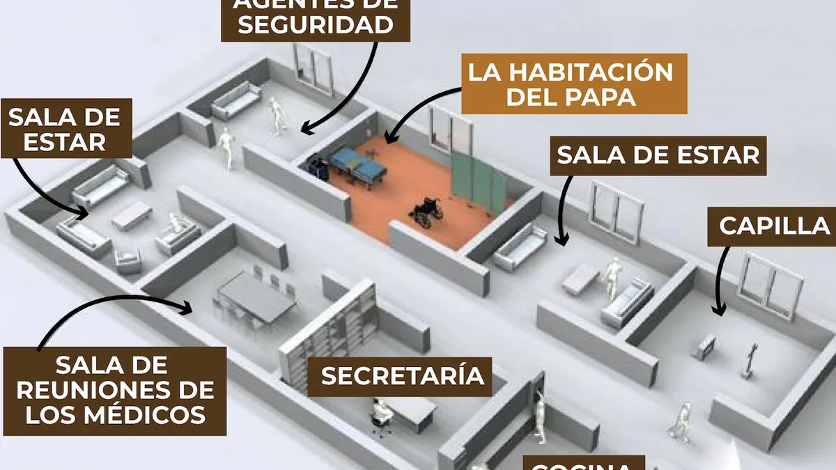 Discreción, intimidad y seguridad. Esas son las características del miniapartemento papal que acoge la convalecencia de Francisco en la planta décima del Policlínico Agostino Gemelli, de Roma, diseñado en su día para las necesidades médicas y personales del pontífice, y que ya ha sido ocupado por otro sucesor de Pedro, Juan Pablo II, cuya estatua preside la entrada al edificio.