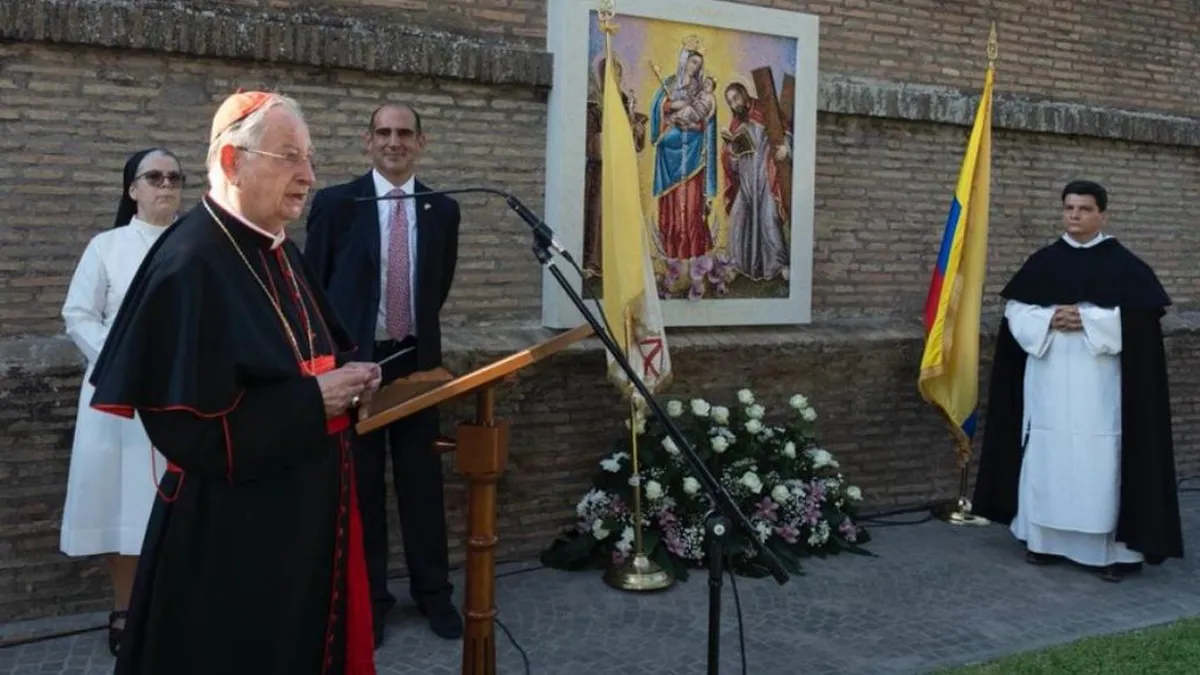 Los Jardines Vaticanos acogen desde este viernes una réplica hecha con mosaicos de Nuestra Señora del Rosario de Chiquinquirá, la patrona de Colombia, un regalo del Gobierno colombiano al Estado de la Ciudad del Vaticano.