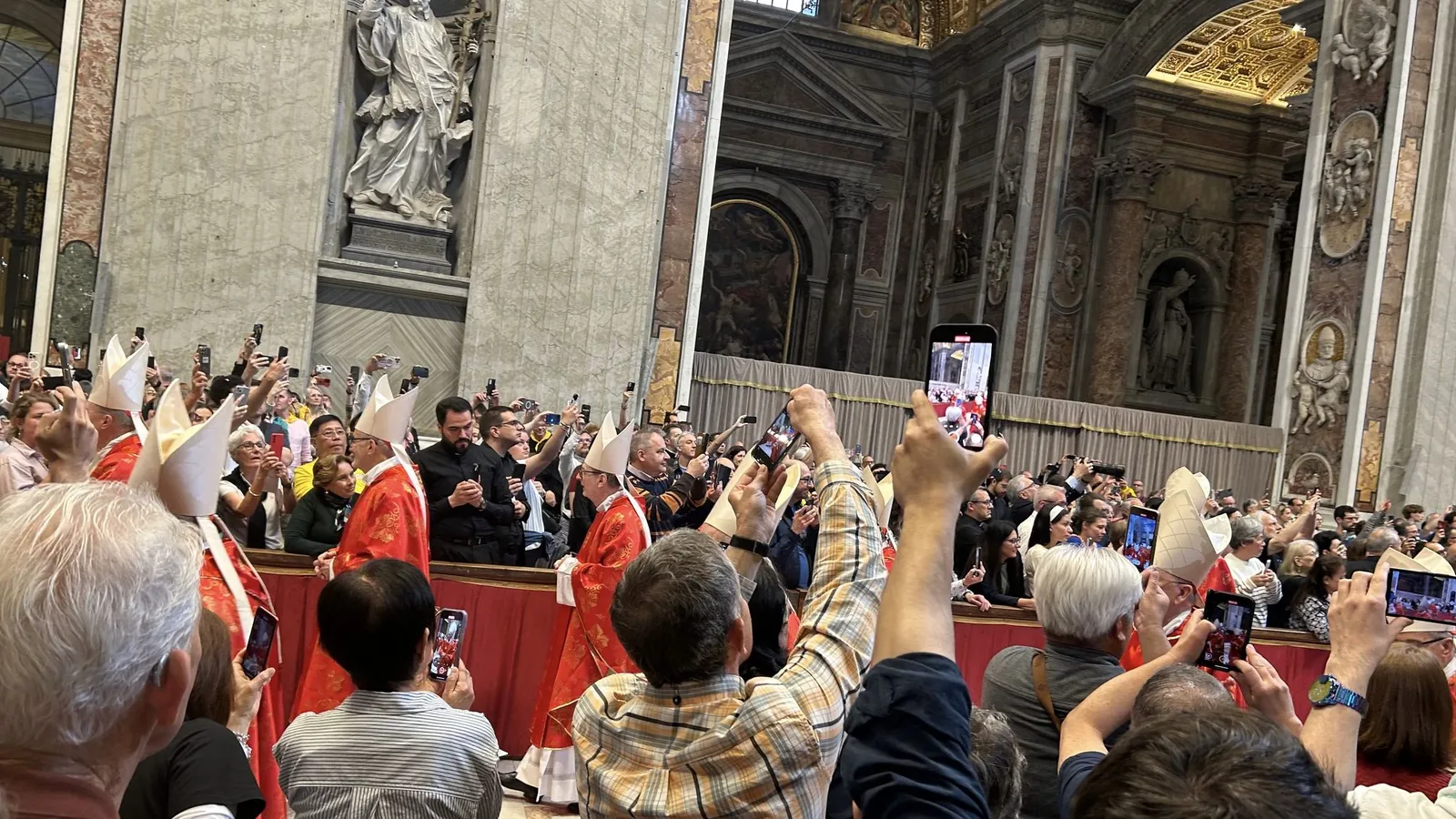 Finalizan los rezos y comienza la expectación. Los móviles se giran en una oleada que va desde la entrada de la basílica al baldaquino de Bernini siguiendo la procesión de los cardenales. No es cómo se entra, sino cómo se sale. A las 10 en punto de la mañana, absolutamente todos entran recogidos y circunspectos. Se entiende. Una hora y media después, la mayoría salen con cara de alivio, cuando lo difícil en realidad viene ahora.