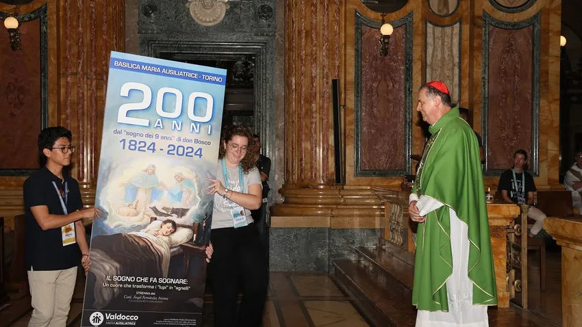 La Basílica de María Auxiliadora tomó un aspecto juvenil cuando los jóvenes del Sínodo de los Jóvenes Salesianos se reunieron con un profundo sentido de reverencia y alegría para la Misa inaugural en Valdocco. La sagrada celebración fue presidida por el Rector Mayor, cardenal Ángel Fernández Artime, acompañado por miembros del Sector de Pastoral Juvenil Salesiana y numerosos Salesianos de Don Bosco de todo el mundo. El Cardenal dio una calurosa bienvenida a los presentes, tanto en persona como a través de la retransmisión en directo, expresando su alegría al ver a tantos jóvenes de todo el mundo reunidos en el mismo lugar donde Don Bosco previó su presencia hace siglos.