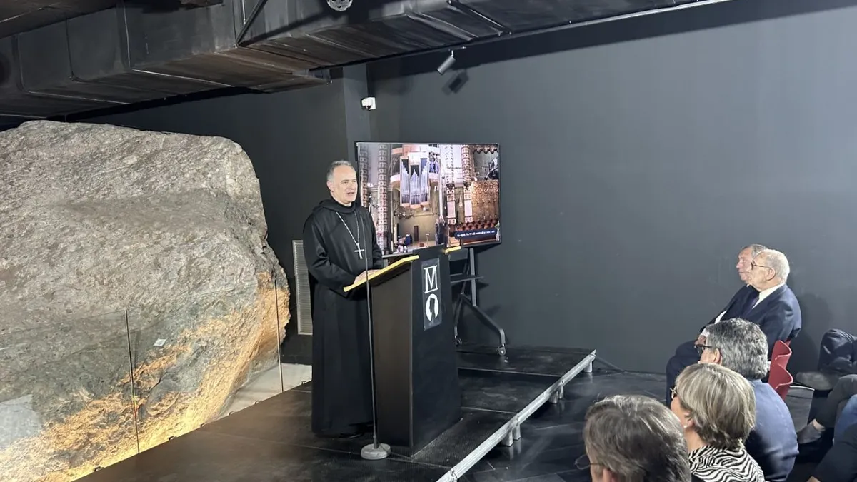 Posteriormente, el P. Bernat Juliol , prior del monasterio y comisario del Milenario 2025, ha atendido a los medios de comunicación y ha explicado su objetivo: “Queremos poner de manifiesto estos mil años de vida monástica, de presencia del monasterio y del santuario en la montaña de Montserrat.”