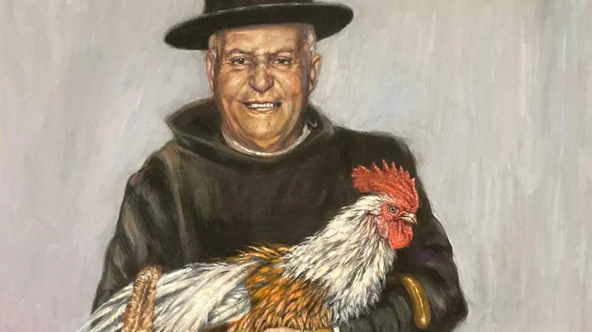 "Esta obra pintada por Rafael Martín es un homenaje a la labor del religioso en Córdoba por los más necesitados y visibilizar en el Palacio de Viana hasta el día 30 marzo"