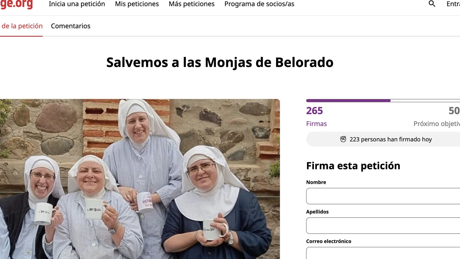 "Cada firma cuenta. Súmate a esta petición y ayuda a que las monjas de Belorado puedan quedarse en su convento. No permitamos que la historia, la fe y la dedicación sean ignoradas", concluye el llamado.