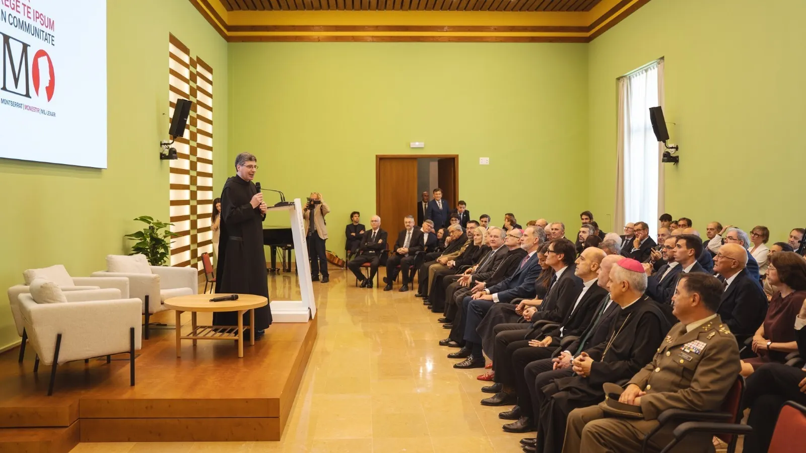 Unas palabras, expresadas desde la sala de la Fachada del monasterio, que han dado paso a las de Ogliari, que ha argumentado, sobre los valores de la orden, cómo, "independientemente de la procedencia sociocultural, los monasterios benedictinos son espacios de fraternidad con perspectiva de apertura, respeto y diálogo, con el objetivo de contrarrestar la lógica basada en la falsedad y acciones marcadas por la opresión".